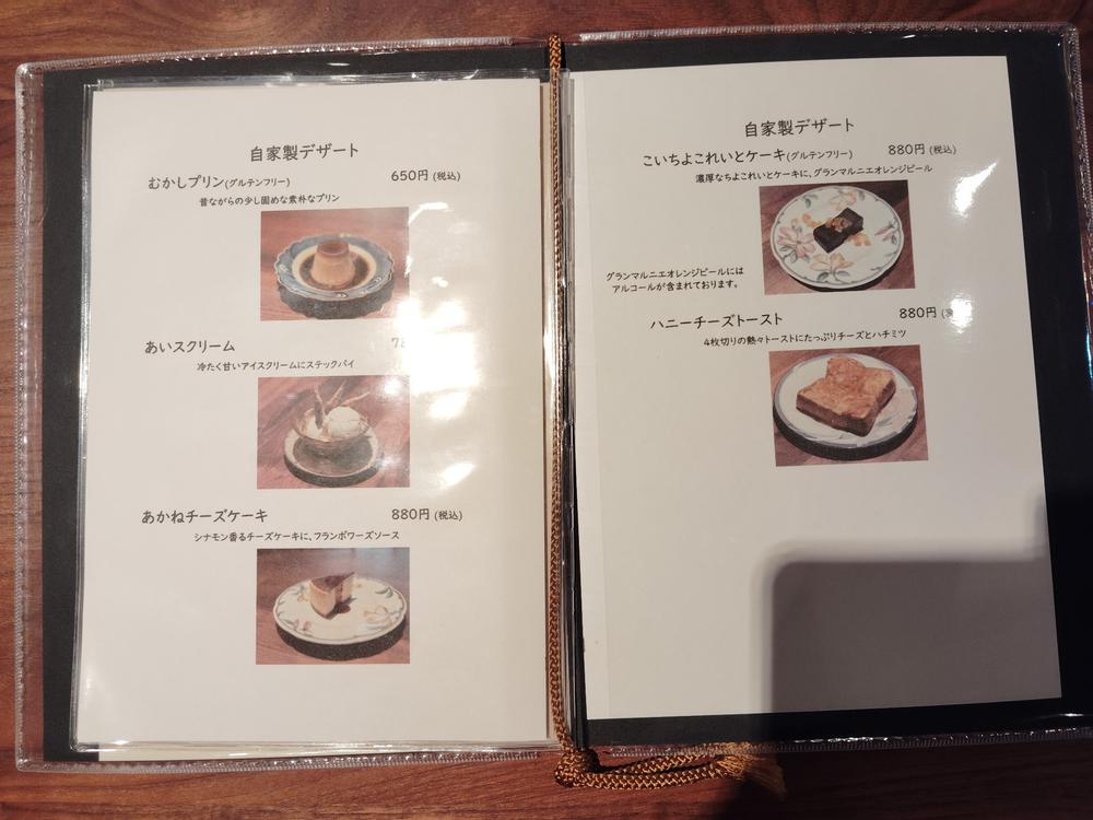 「あかねチーズケーキ」はシナモンが香る濃厚仕立てで、フランボワーズソースと合わせて楽しめると丁寧にメニューに説明書きがあります。