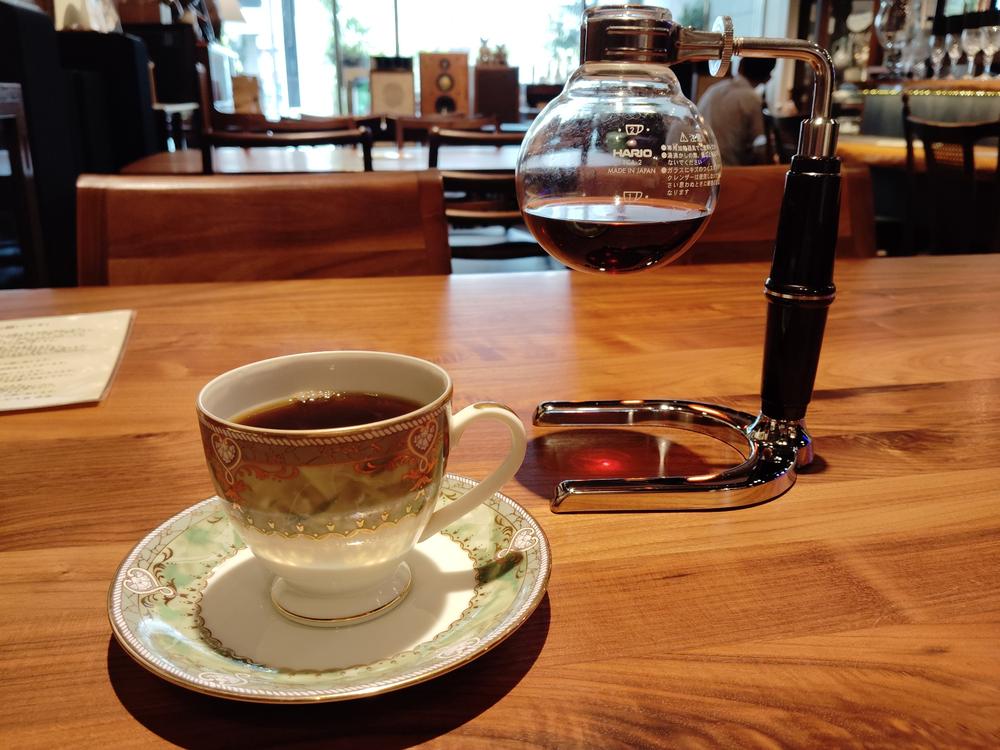 サイフォンで淹れられたブレンド珈琲。香り高く深みのある味わい。