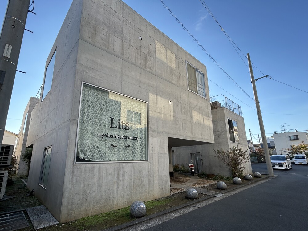駅の改札から目の前の道路を渡り、東急ストアとドラッグストアの間の道を線路沿いに進みます。最初の角を右に曲がると、コンクリートでできたグレーの建物が見えてきます。