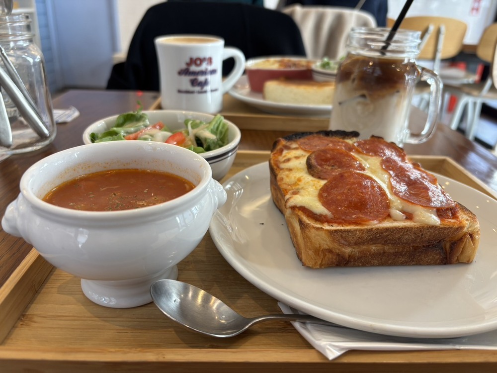同行者はピザトーストが好きでよく食べていることもあり、ペパロニ・ピザトーストとアイスラテを注文しました。席に運ばれてくるのを待ちます。