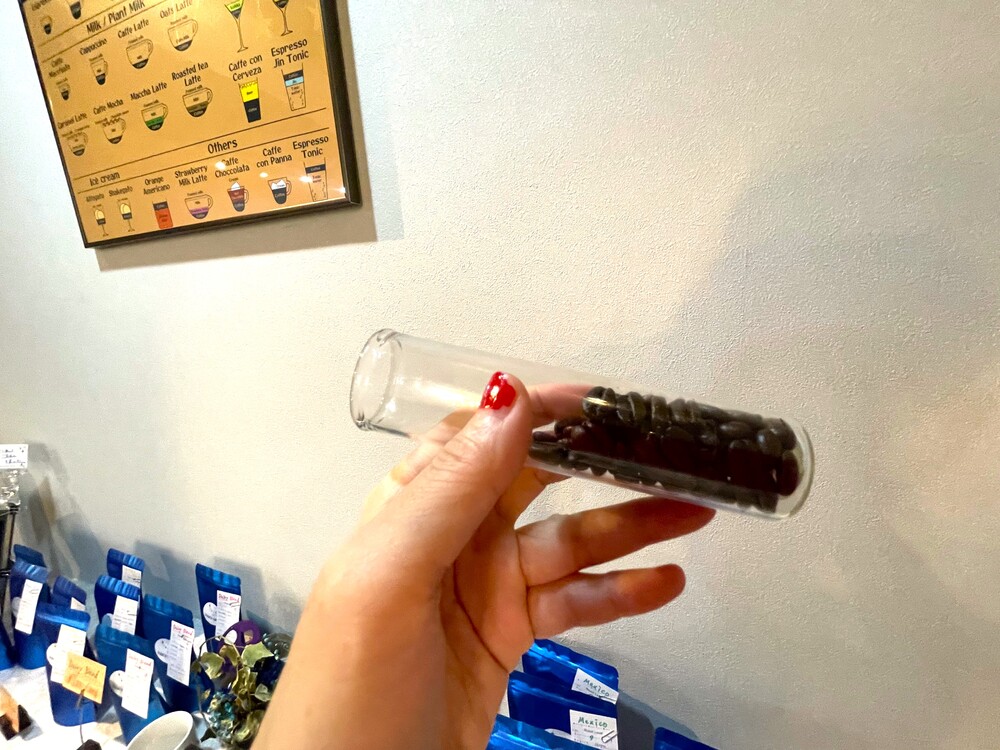 販売コーナーには、豆のサンプルがありました。自分の五感で色や香りを確かめられるようになっています。