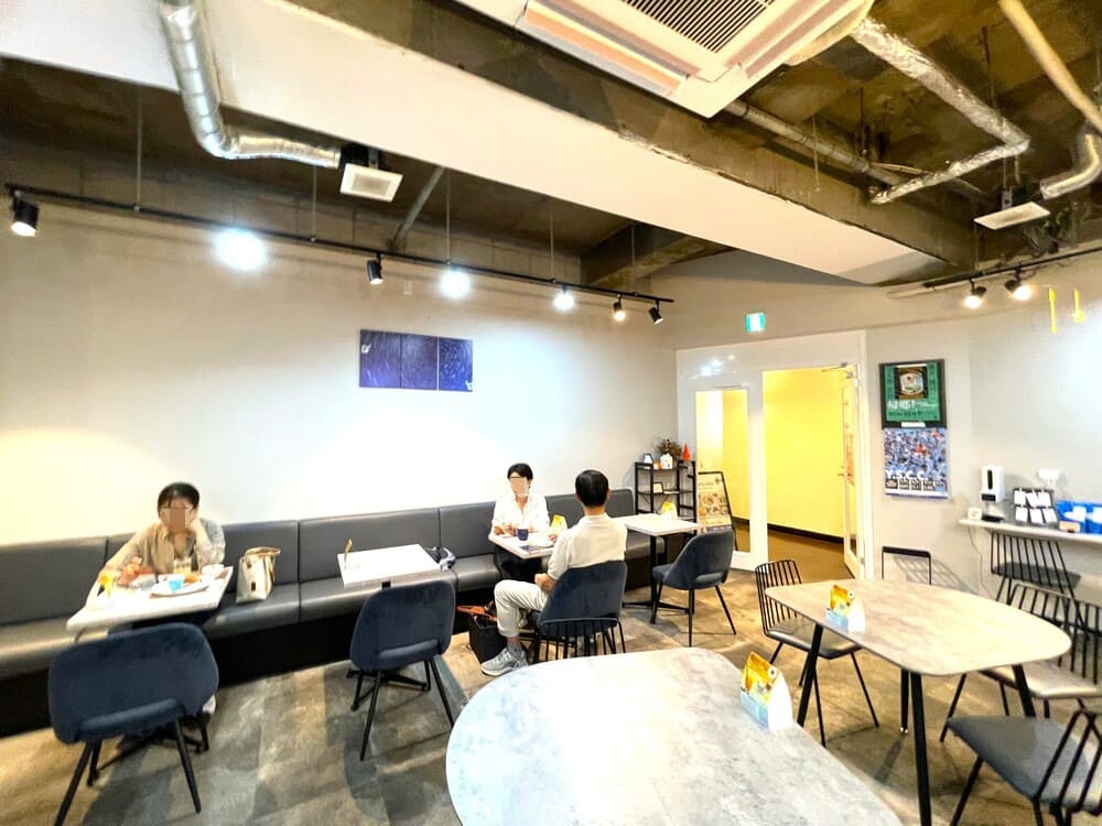 店内に一歩入ると、静かに音楽が流れていて落ち着いた雰囲気。広々とした店内に、白い壁やライトグレーの床、イスなどのインテリアが際立ちます。