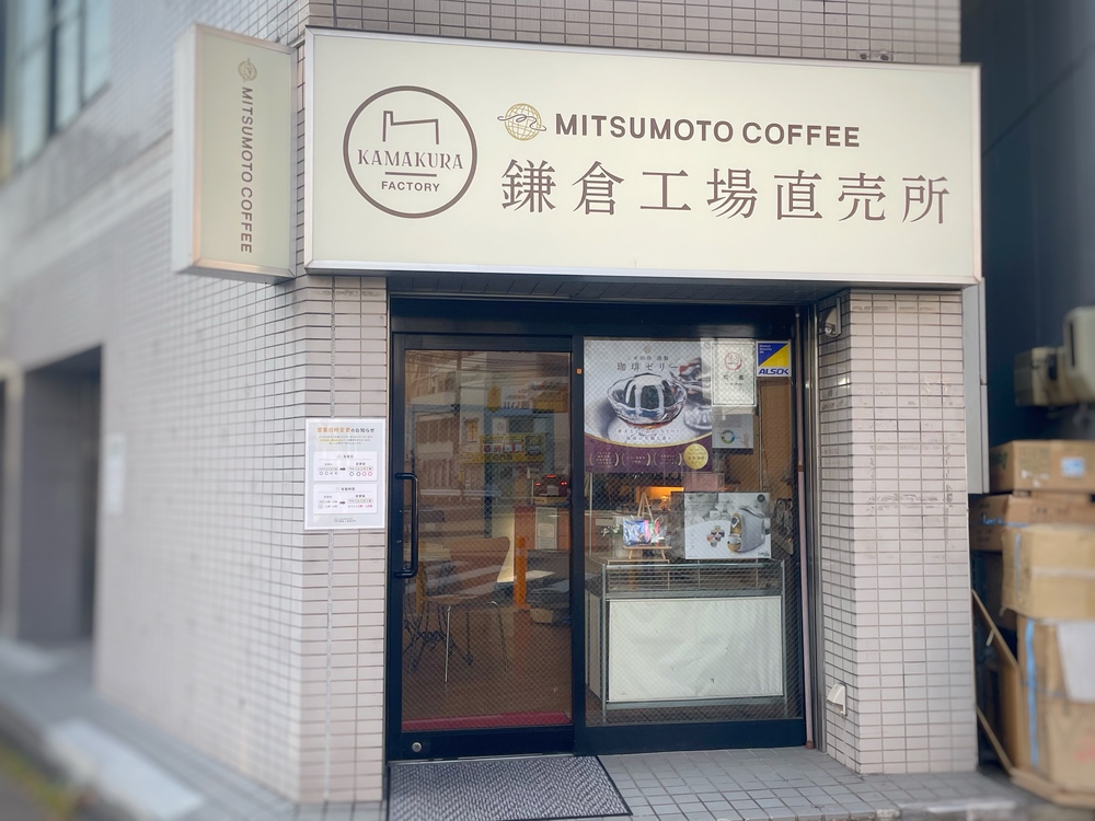 駅から近く、週末も利用しやすい三本珈琲 鎌倉工場直売所。