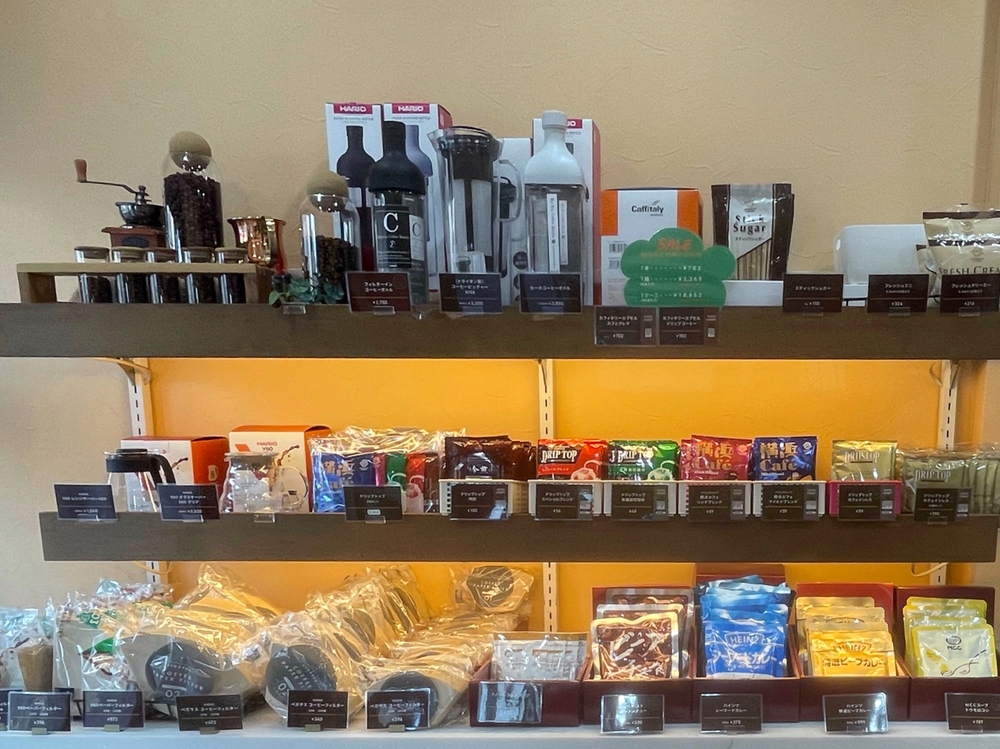 珈琲豆だけでなく、コーヒーメーカーやフィルターインの珈琲ボトルなどの珈琲関連のグッズも販売されていました。