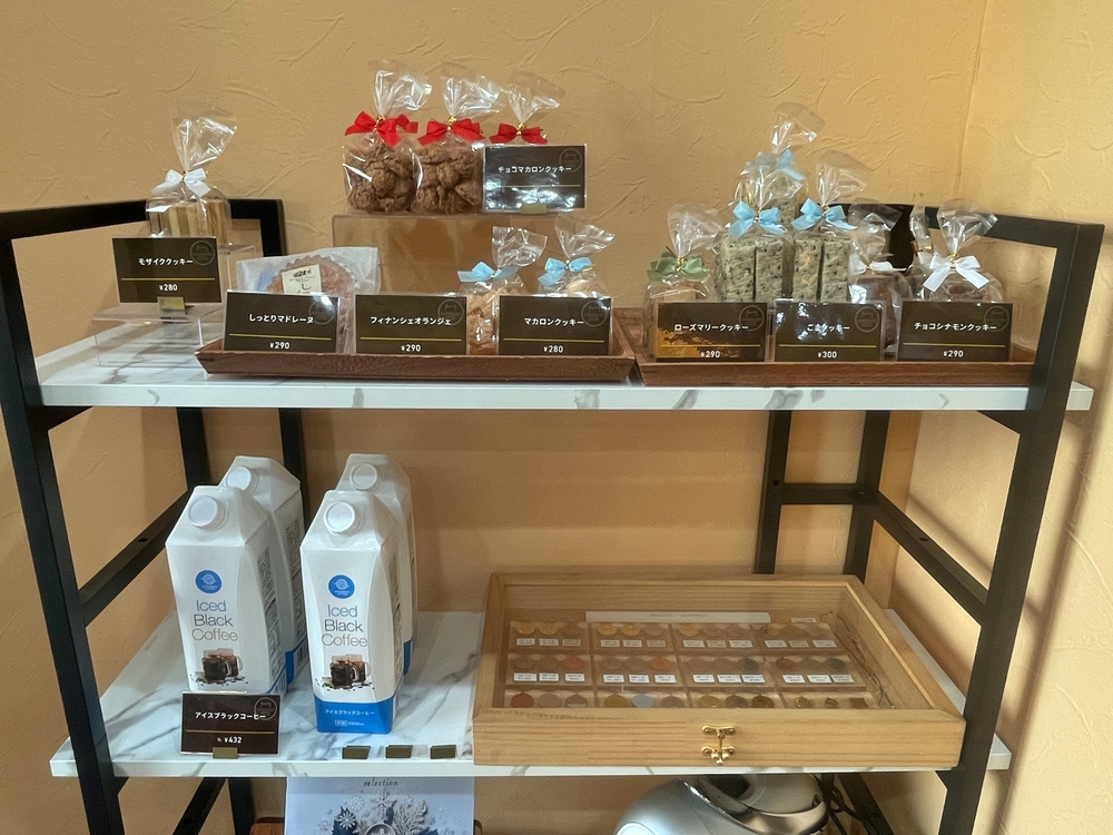 さらに、珈琲ゼリーやクッキーなどの焼き菓子も数種類並んでおり、珈琲と一緒に購入できるのがうれしいところ。