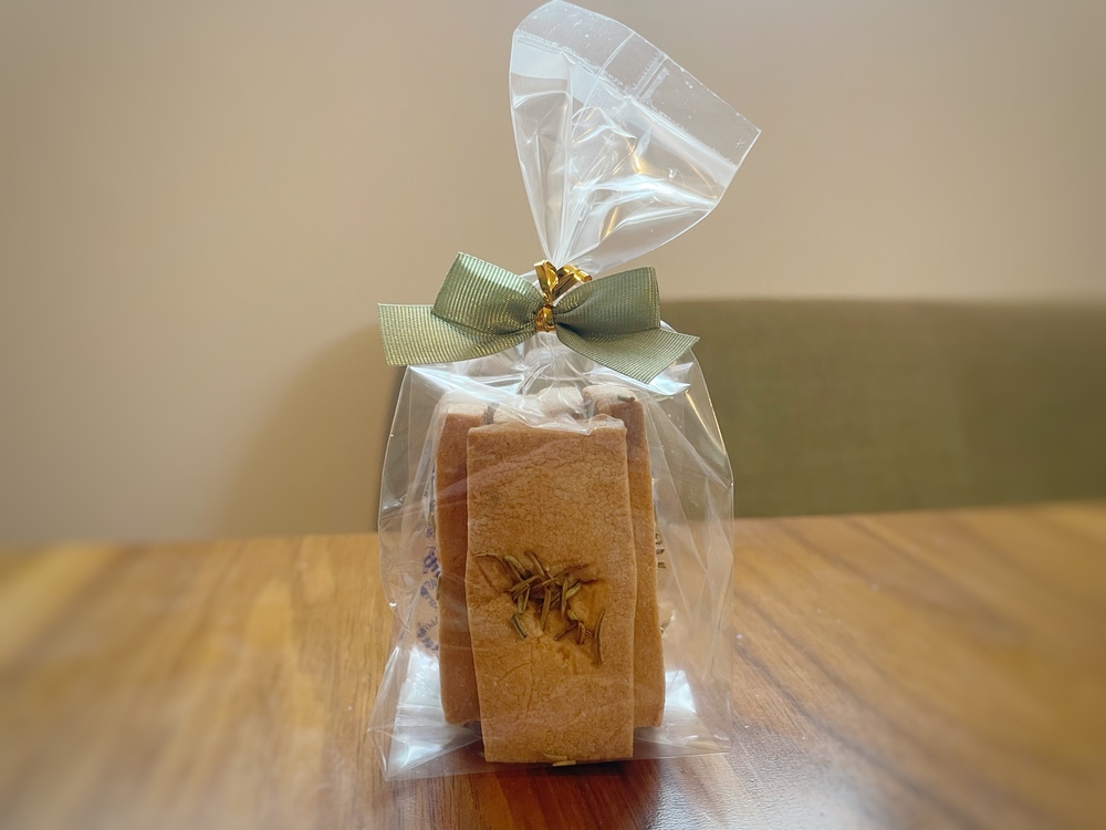 甘さ控えめのクッキー生地に、香りの良いローズマリーがほどよく効いていて、大人向けの味わいでした。