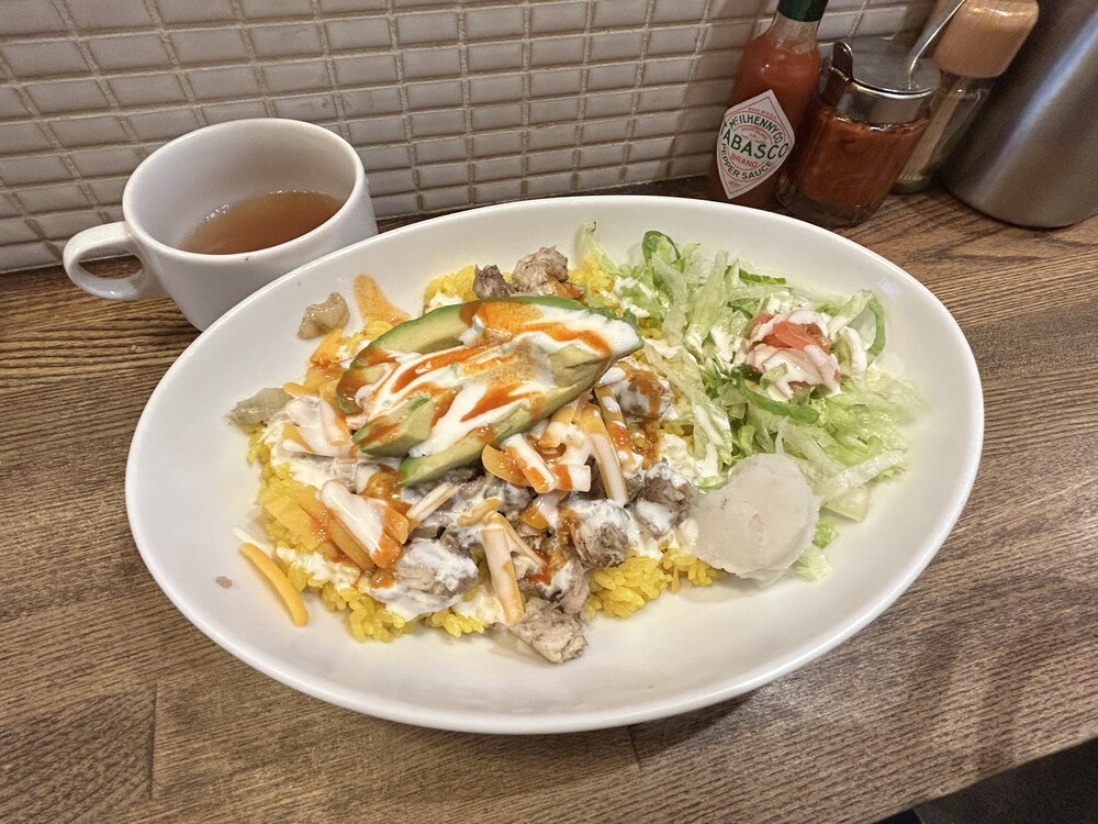 ニューヨークの屋台で人気となった名物グルメ、ほかほかご飯のうえにローストチキンをたっぷりのせた、チキンオーバーライスの専門店です。