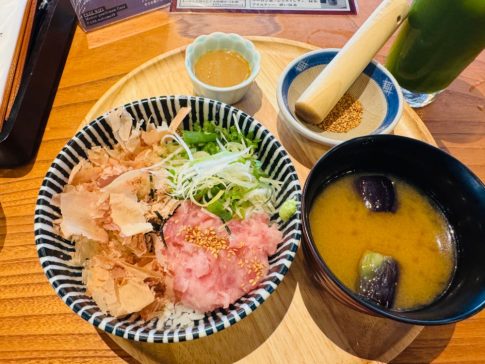 新鮮なネギトロに、かつお節やネギの素材本来のやさしい味わいと香りをじっくりと堪能しながら、平日のお昼から贅沢なひとときを過ごせました。