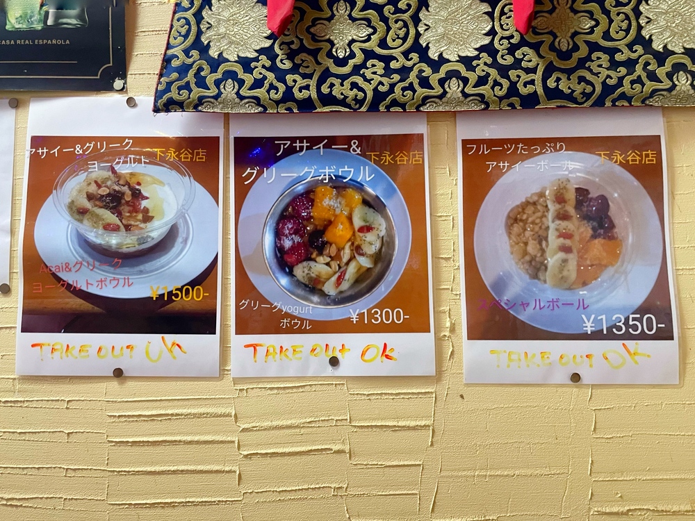 さらにメニューにはカレーうどんやナンピザ、パコダ、ビリヤニ、青唐辛子のマスタード漬け、アサイーボールまであり、ジャンルの幅広さに驚きました。