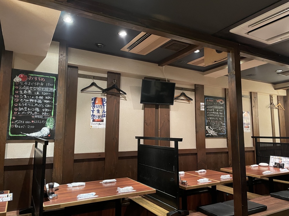 テーブルは掘りごたつなので、靴を脱いでゆっくりお酒と焼き鳥を楽しむことができますよ!