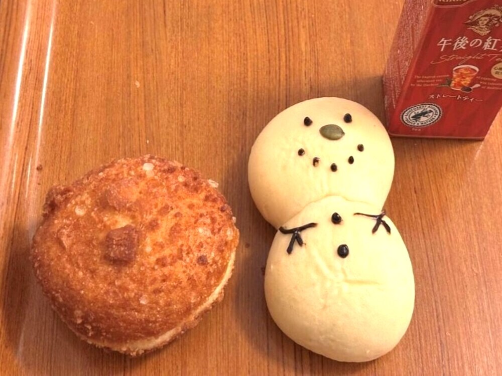 ゆきだるまのパンはかわいすぎて食べるのがもったいないくらいでしたが、カスタードとチョコの2種類のクリームが入っていて、見た目も味も大満足でした。