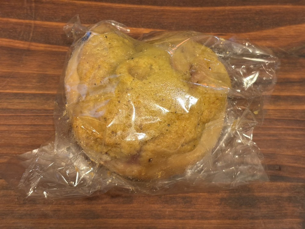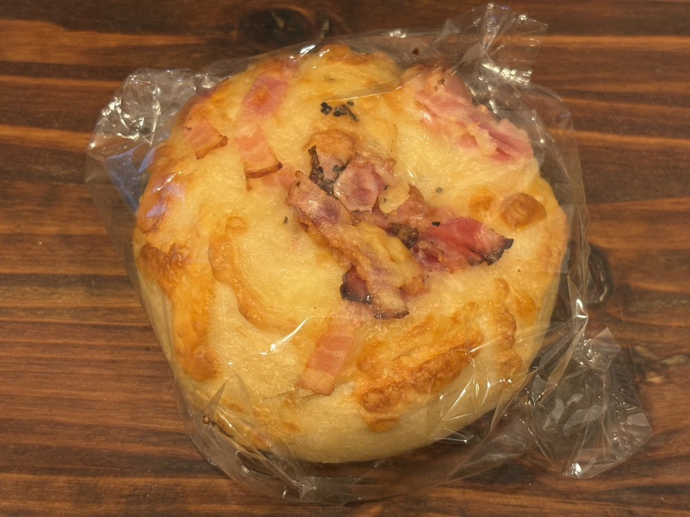 惣菜系の王道ですよね。ベーグルのもちもち感と、香ばしいベーコンの旨み、チーズの塩気が相性抜群!シンプルだけどクセになるおいしさで、朝食にもランチにもぴったりの味わいです。