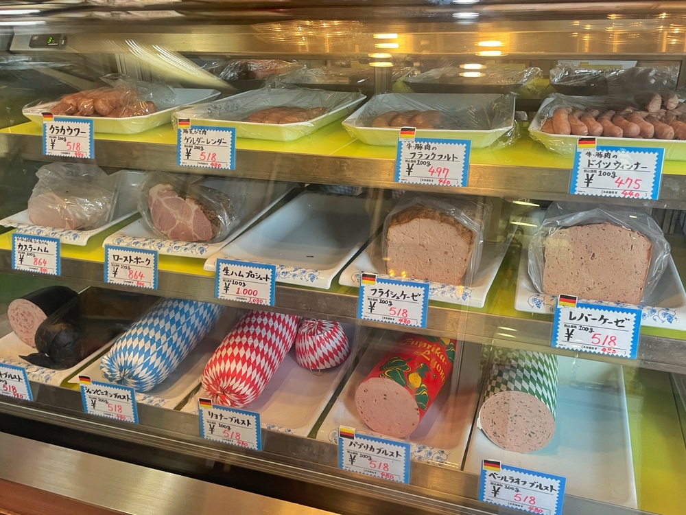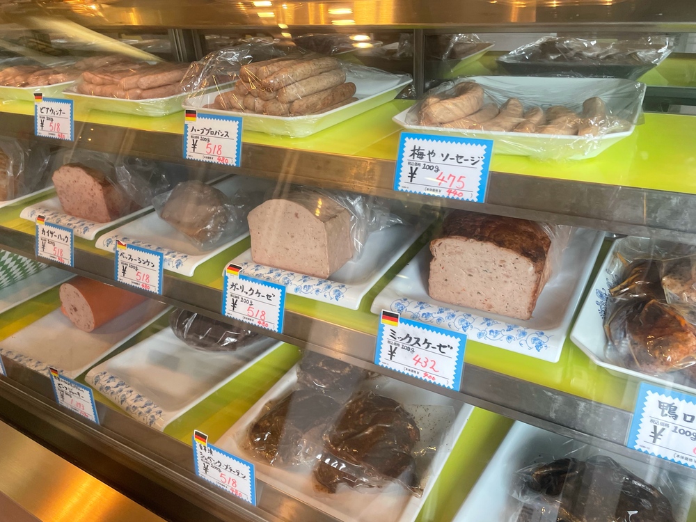 店内に入ると、ショーケースにずらっとたくさんのウインナーやハムが美しく並んでいました。