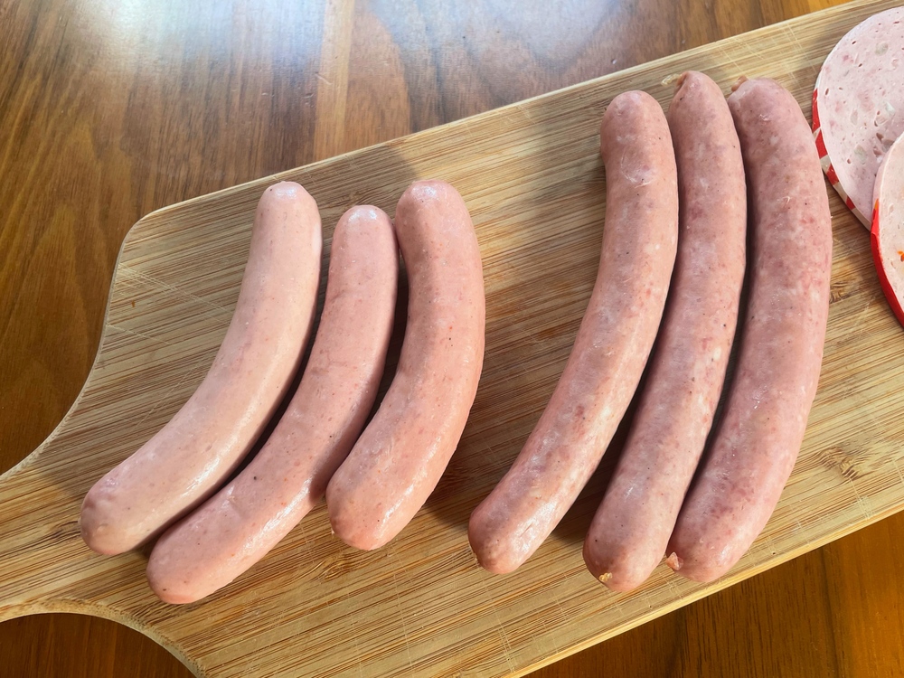 今回購入したウィンナーは2種類とも細めのタイプで、100gあたりの本数は約3〜4本、今回は3本ずつ入っていました。