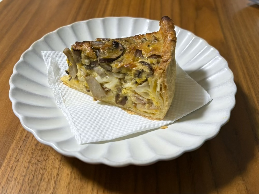 今週のキッシュは、きのこ。以前購入した時とは違う味で楽しみです。