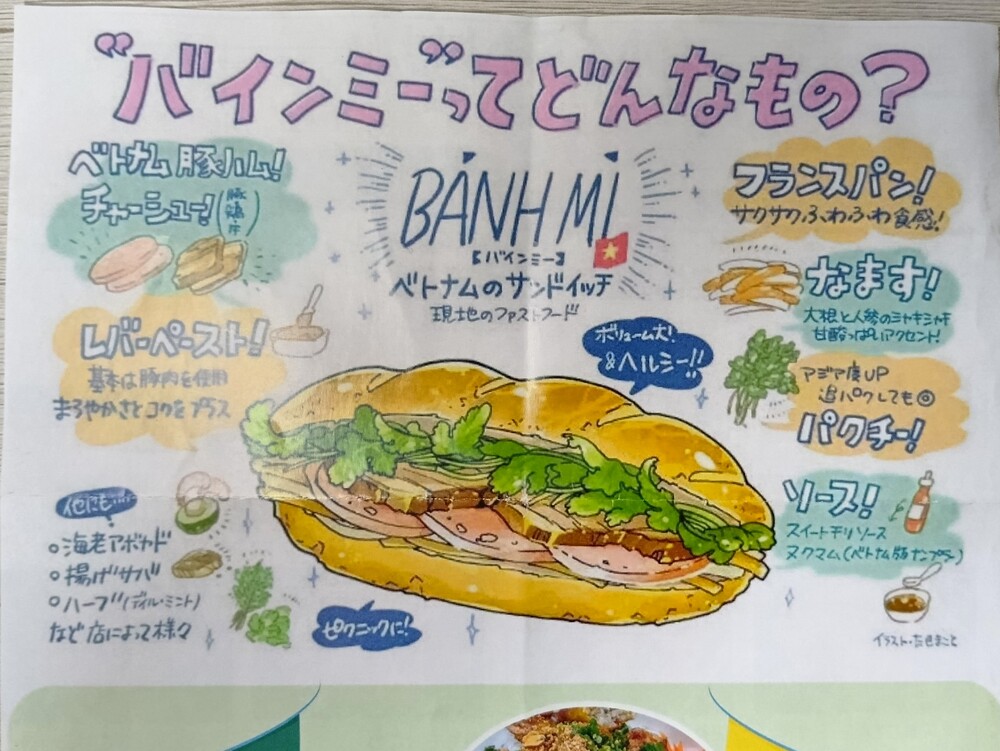 一番人気は「スペサルバインミー」。ベトナム風チャーシューと豚ハムが、満足感のある一品だそうです。他にも、爽やかな香りが特徴のレモングラス豚肉炒めバインミーも人気なのだとか。