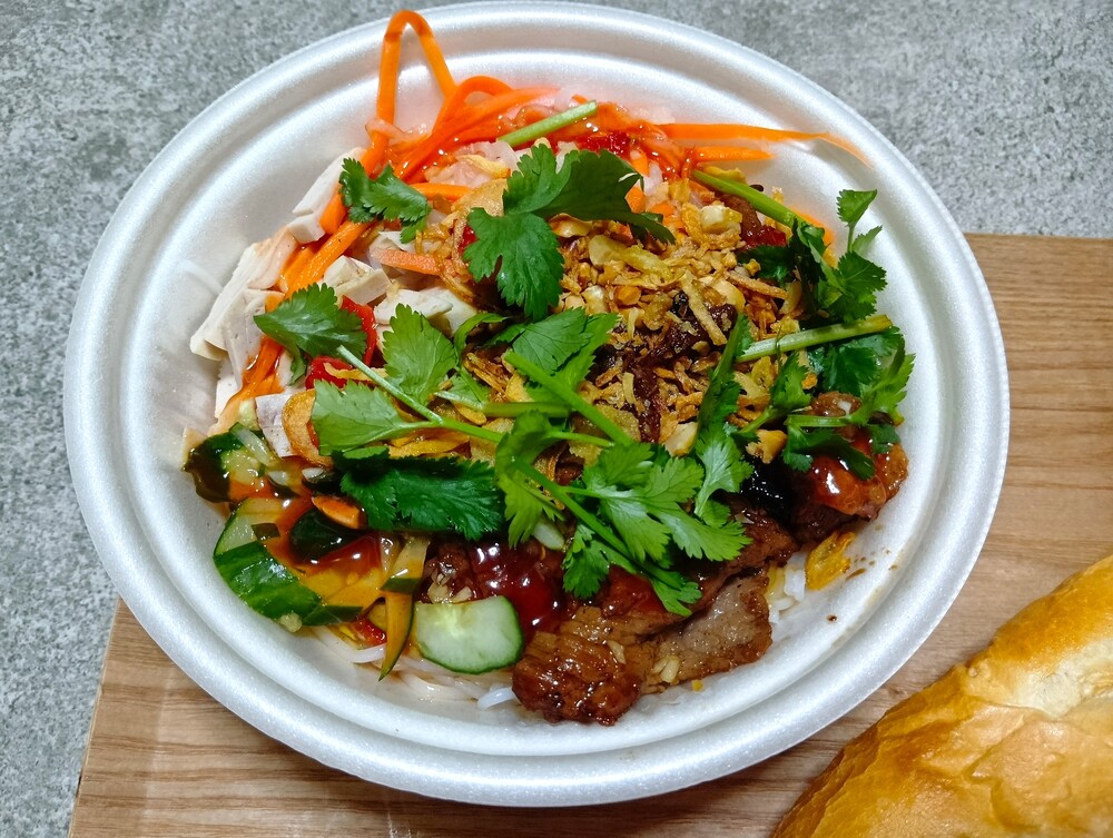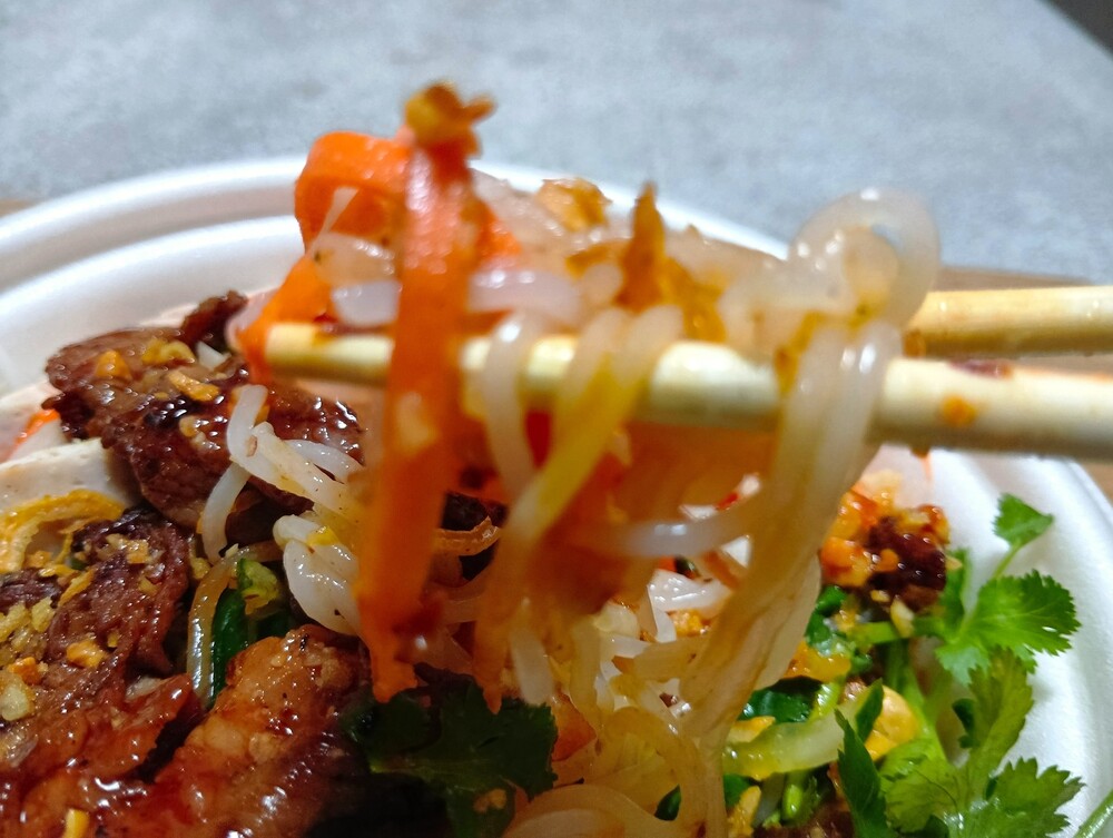 フォーは米麺がスープに入った料理ですが、こちらはそうめんのようにさらっと食べられる、汁なしタイプです。